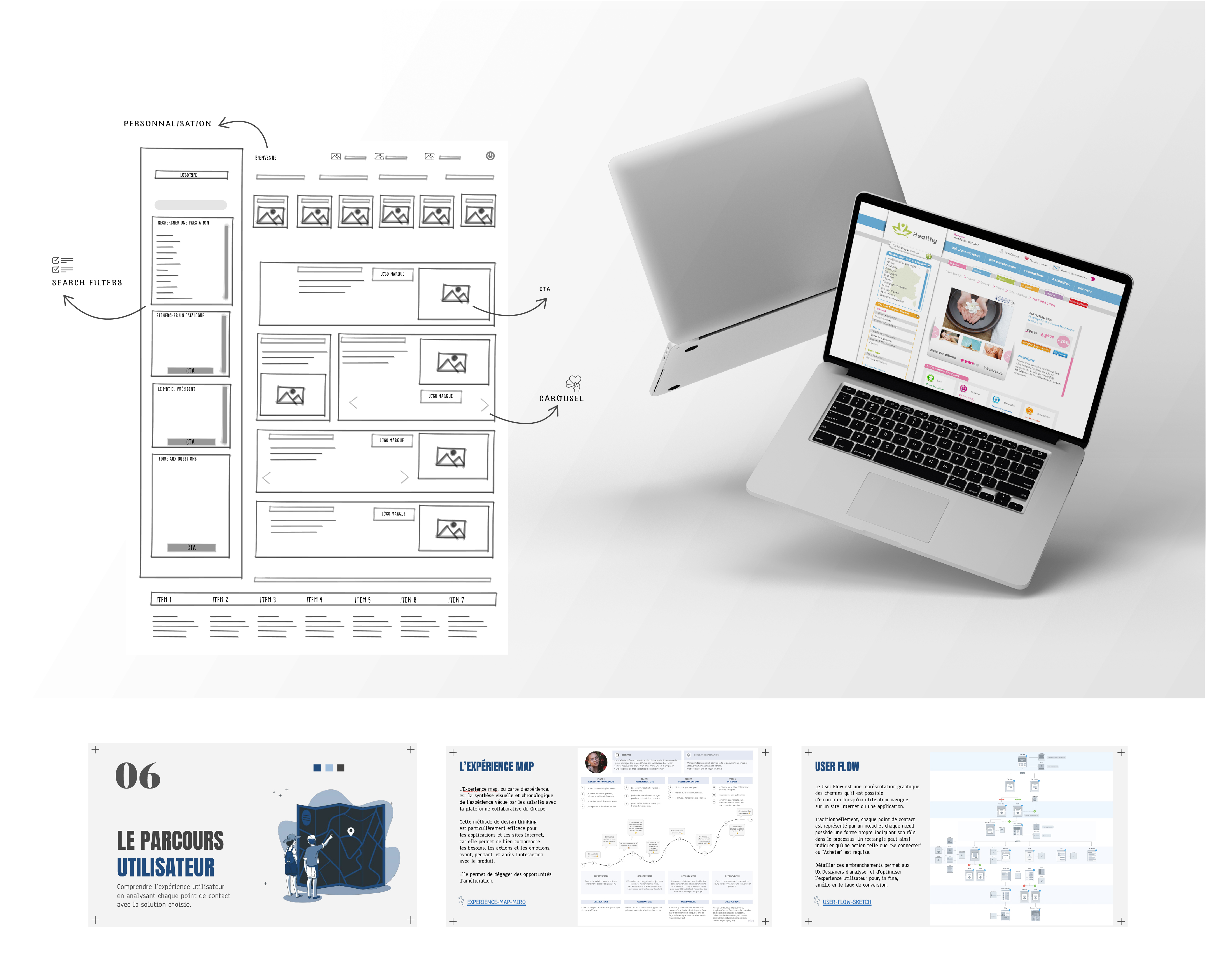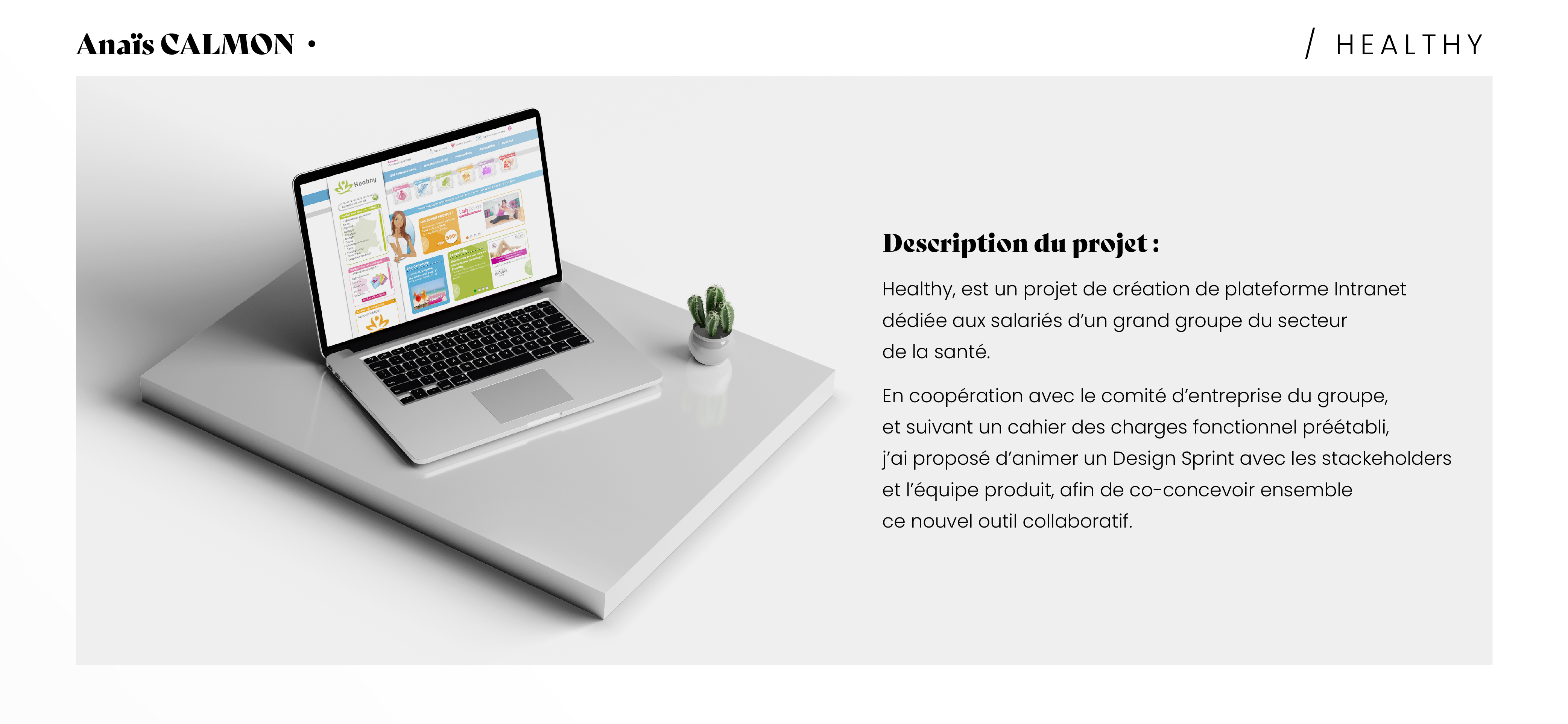 L'intranet Healthy est un projet destiné aux salariés d'un groupe de l'industrie de la santé. Mon rôle a été d'accompagner les commanditaires et l'équipe produit à concevoir ensemble une plateforme collaborative correspondant au cahier des charges du comité de direction et répondant aux besoins des salariés. Pour cela, j'ai organisé et animé un Design Sprint en qualité de facilitatrice, conçu la plateforme tant dans sa dimension UX qu'UI et pour finir, facilité les rétrospectives de sprint. Les KPI sur ce projet étaient d'ordre qualitatifs : amélioration du sentiment d'appartenance au groupe, bien-être au travail et NPS.